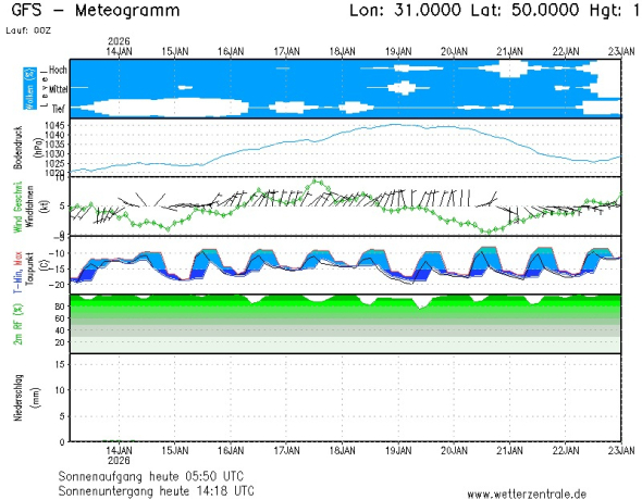 “Щодня омріяне послаблення морозу совають то раніше, по пізніше, то з 15 січня, то з 17 січня. Ще вчора в прогнозі було кілька хвиль послаблення морозу, я зазираю сьогодні і що я бачу? Внизу – прогностична діаграма для Києва і там чітко видно, що найближчим часом щось не видно якихось послаблень морозу! Вночі весь час в межах-14…17 градусів, вдень близко -10 градусів. Шукайте збоку позначку T min max, тобто, температуру мінімальну та максимальну”, – написала вона.